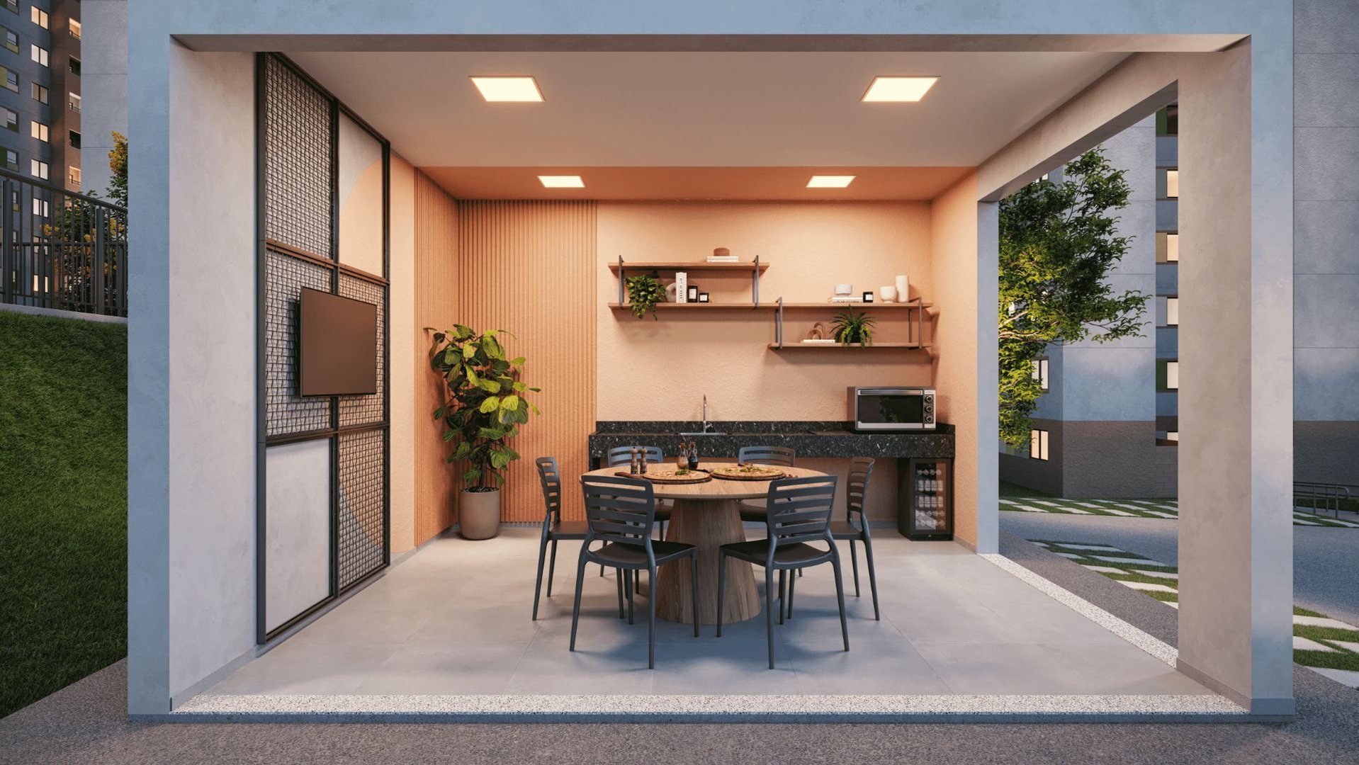 O empreendimento ainda conta com acabamento diferenciado e a moderna Fachada Brasileira da MRV, valorizando ainda mais o condomínio.