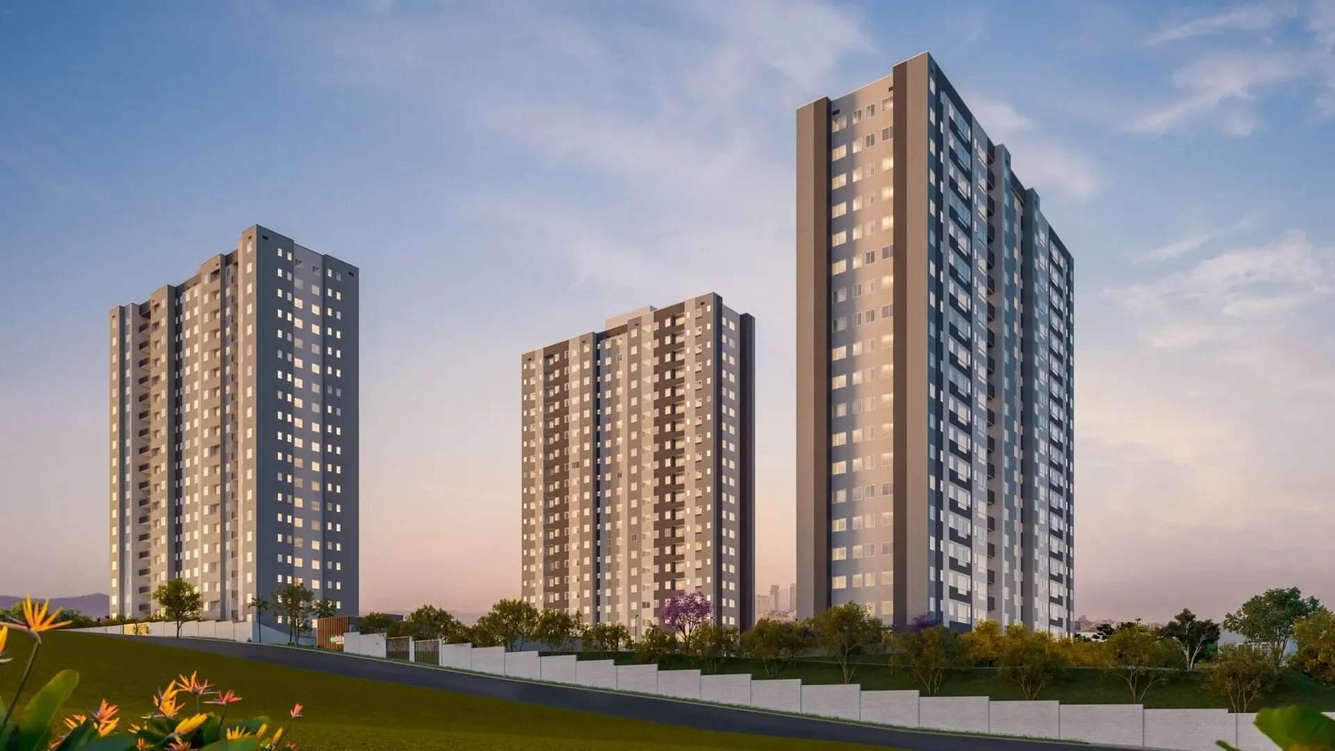 Apartamentos studio, 2 e 3 quartos, com opções de suíte e varanda, pensados para diferentes estilos de vida.