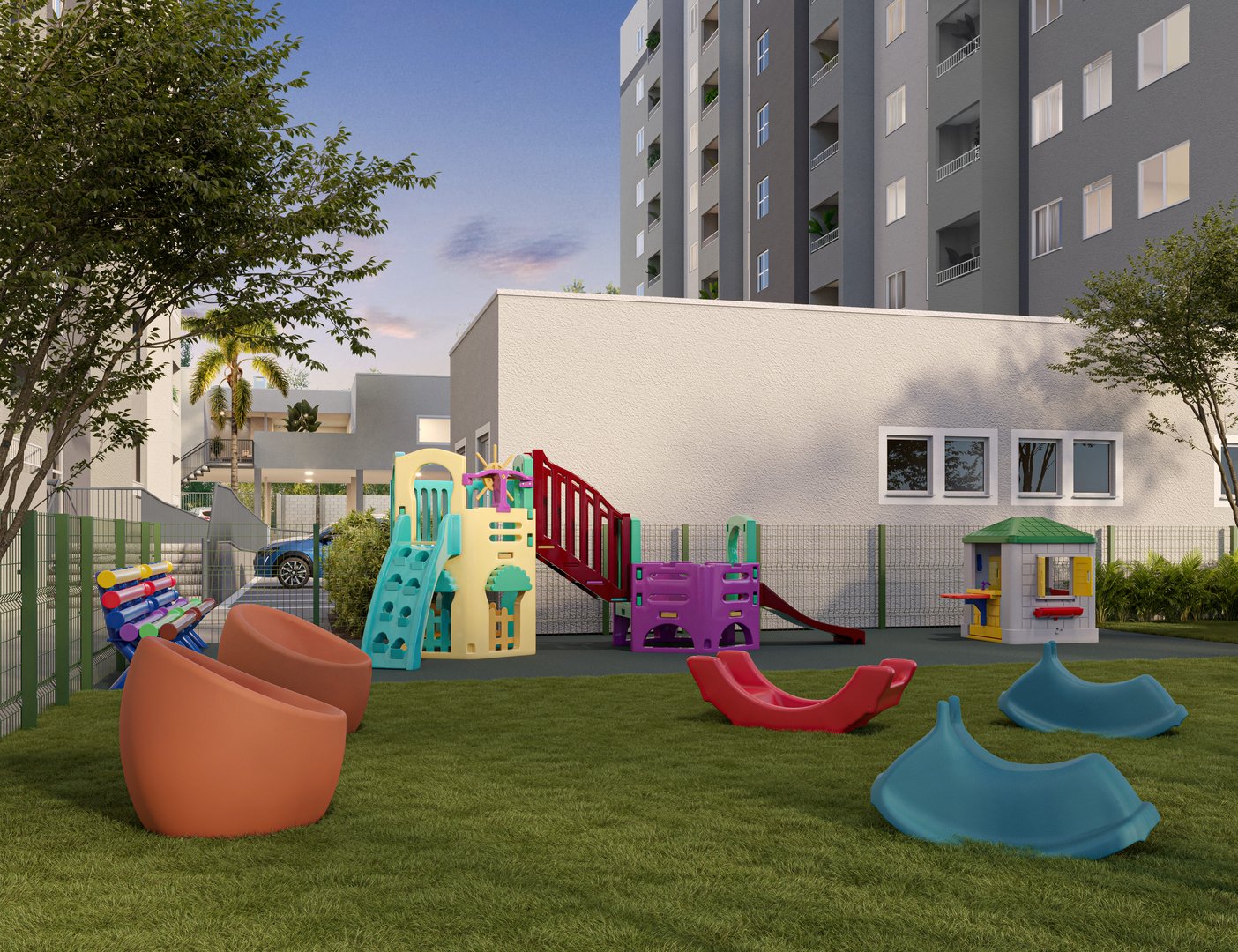 Apartamentos de 2 dormitórios com opção de varanda e elevador em todas as torres, em condomínio fechado com lazer completo: coworking, lavanderia, academia, sala de jogos, salão de festas, área gourmet e playground.